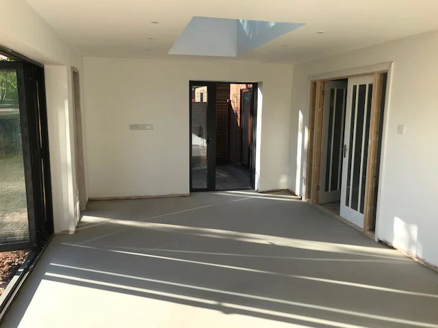 This project consisted of the design and construction of a single-storey “Garden Room” extension, internal alterations to open up the kitchen space into the extension, new kitchen, new master bedroom Ensuite and internal refurbishment/decoration.
